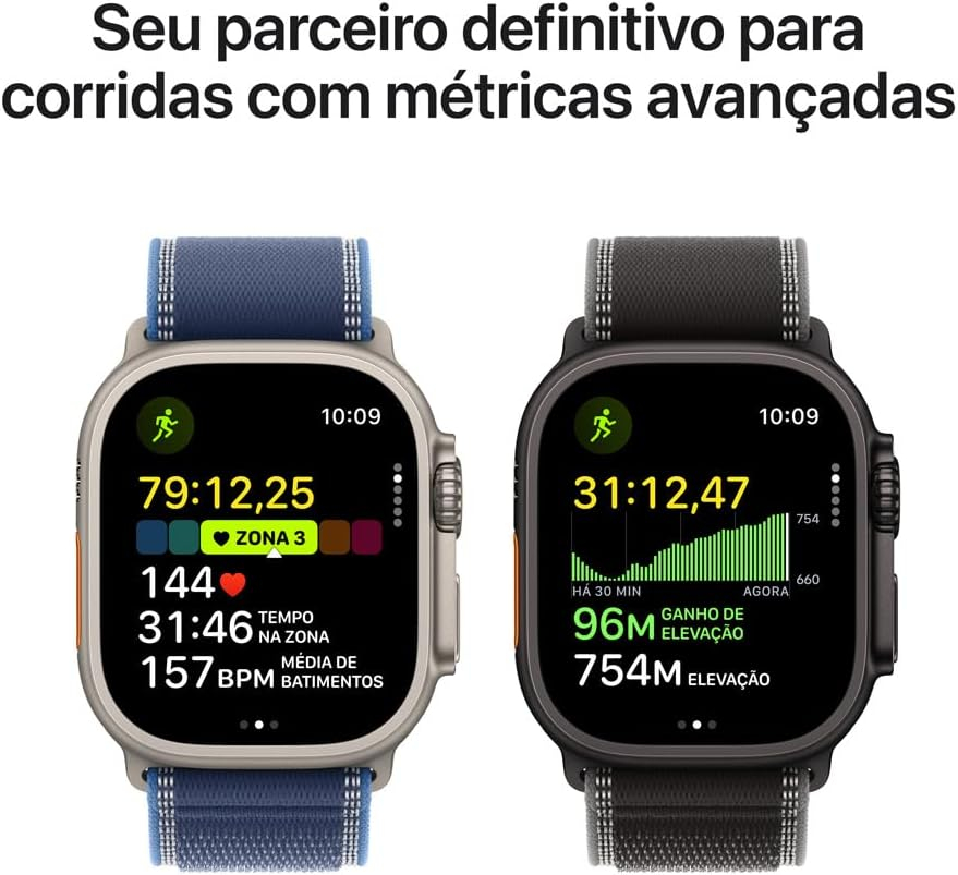 FORTE E PRONTO PARA A AÇÃO — Pensa em um relógio feito para durar. O Ultra 3 vem com uma caixa de titânio extremamente resistente e tela de cristal de safira. Ele também resiste a água até 100m e é ideal para nadar, mergulhar e praticar esportes aquáticos de alta velocidade.